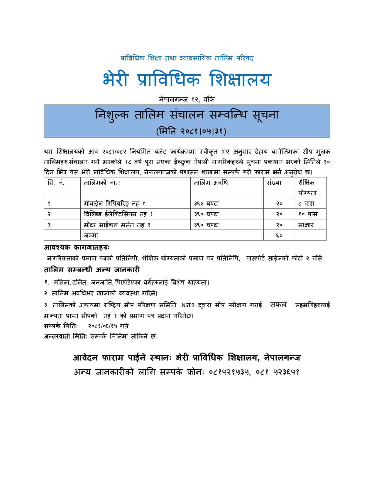 © 2026 Bheri Technical School. All Rights Reserved